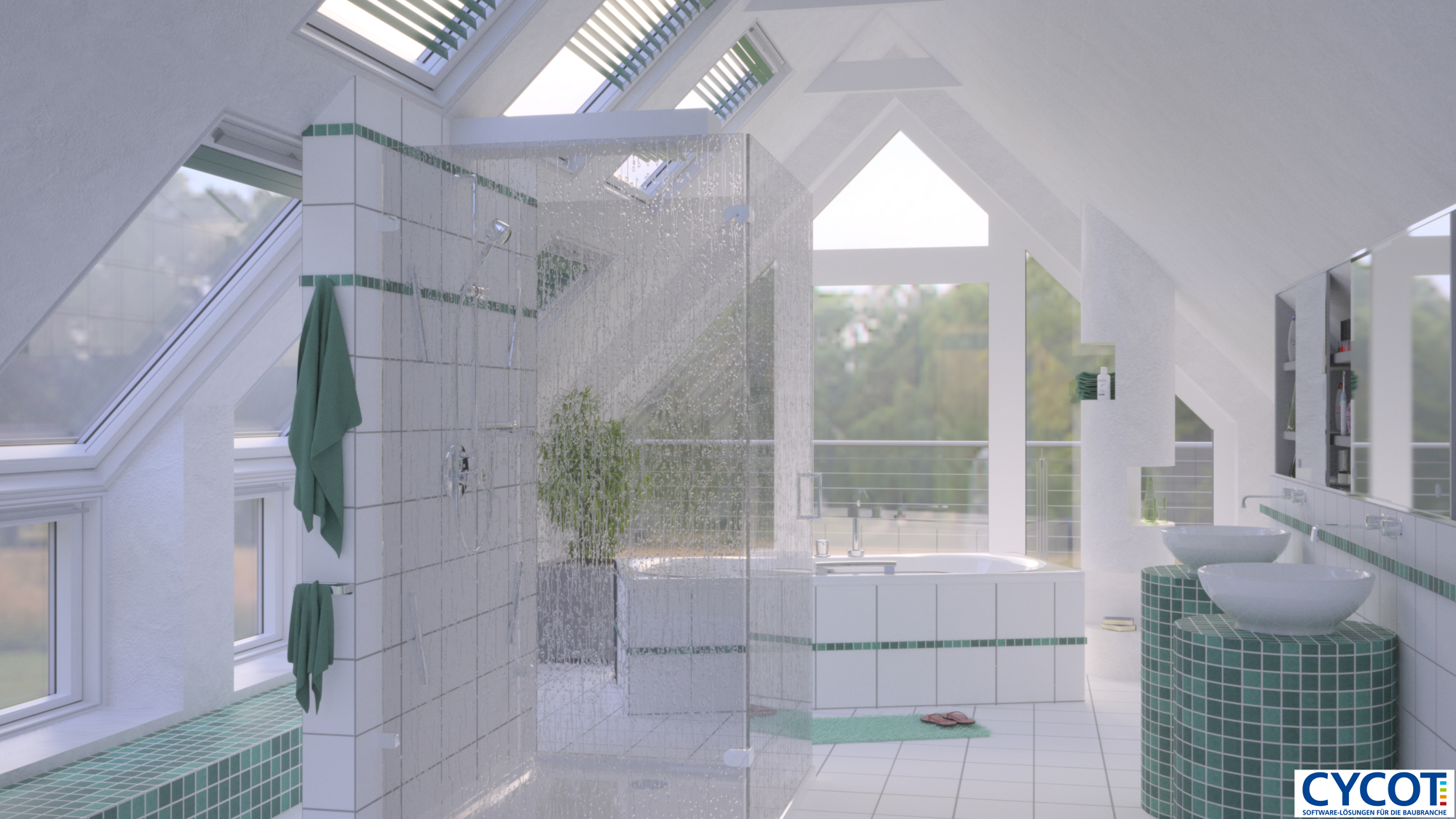 The only comment I could make is rather not CG oriented. If one splashed water that high in the shower then the rest of the bathroom would definitely be not a s clean as it looks right now