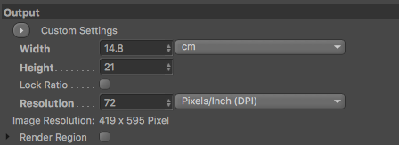 Yeah...it's not like it needs to be in Indigo right now. It's just something for the future that would be nice to have...it is still pretty easy to open up C4D and get the right conversions. (Although C4D's conversion isn't perfect...if you don't change the resolution from display to print setting it usually ignores the DPI you put in. So a FullHD render will be 1080p on 72DPI and 2000DPI also....maybe its a BUG and i should report it to MaxonFakeShamus wrote:yeah, I am admittedly not so familiar with the sizing parameters of A4, etc, (the U.S. rarely goes with those conventions) and it is a bit more complicated to covert to inches and then pixel dims. I think at least adding cm, mm, inches, and resolution would be a benefit for everyone.