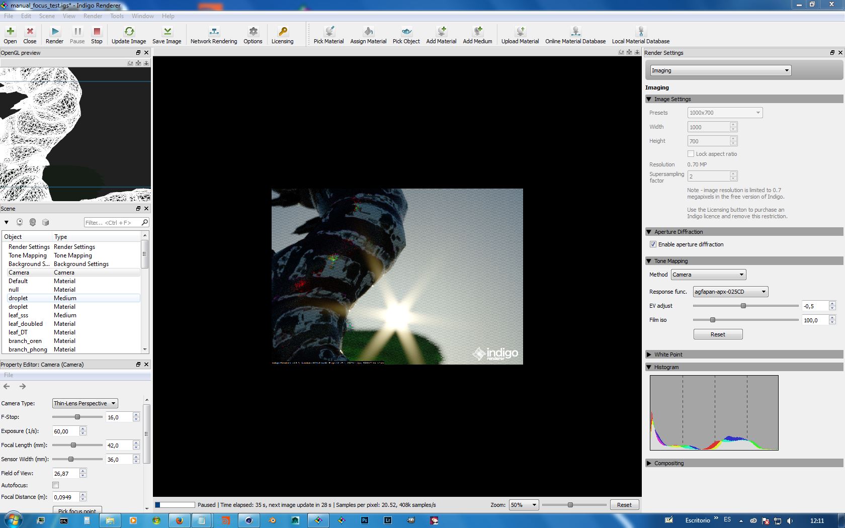 Not sure; when autofocus is on the things works right (openGL and render has the same "center of view"), but if a manual focus is required, every change in the focus alter the values of F-stop and focal lenght and distort the OpenGL ... etc (maybe this is necessary).