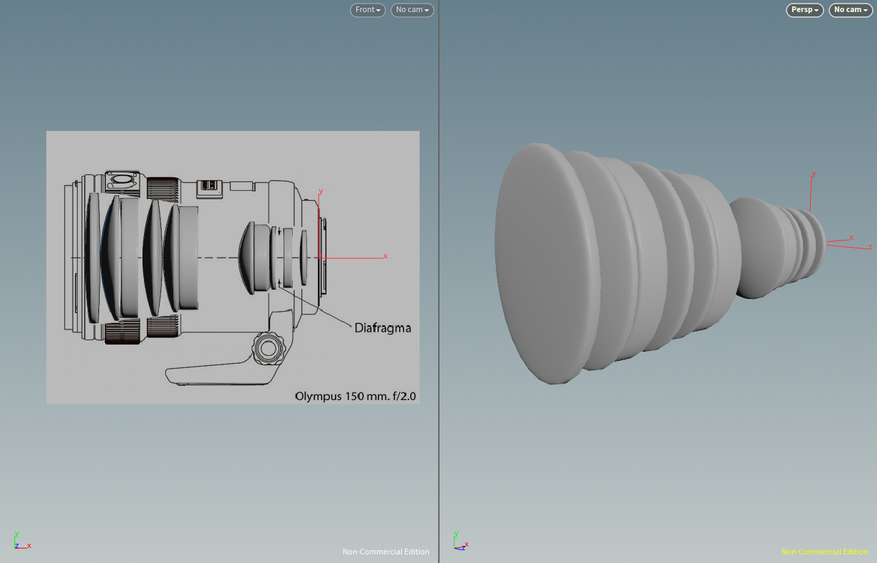 An Olympus 150 mm objective with 11 lenses (out of scale in this one).