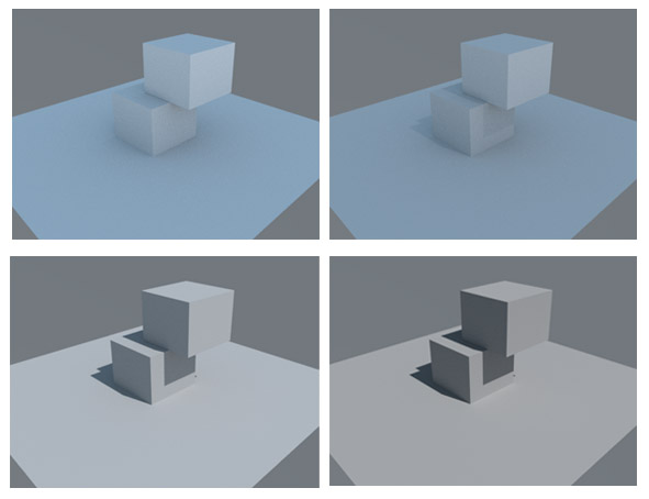On first image thers no sun component (only sky ambient ). Second image: 90% sky, 10% sun. Last: 50/50.