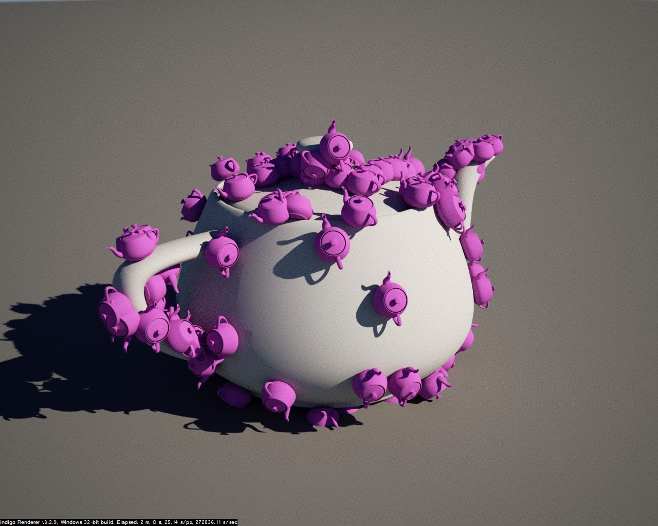 OnoSendai wrote:I plan to add a scatter shader into Indigo, which would basically scatter instances over the surface of some target object.
