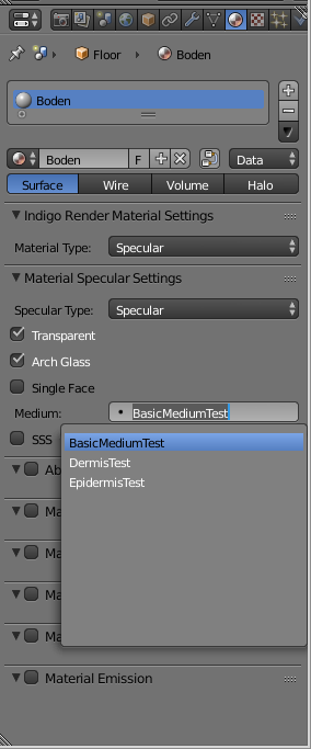 i started to de-couple the medium properties panel from the material tab. I moved the medium definition to the world panel and make a selection box in the Material panel.