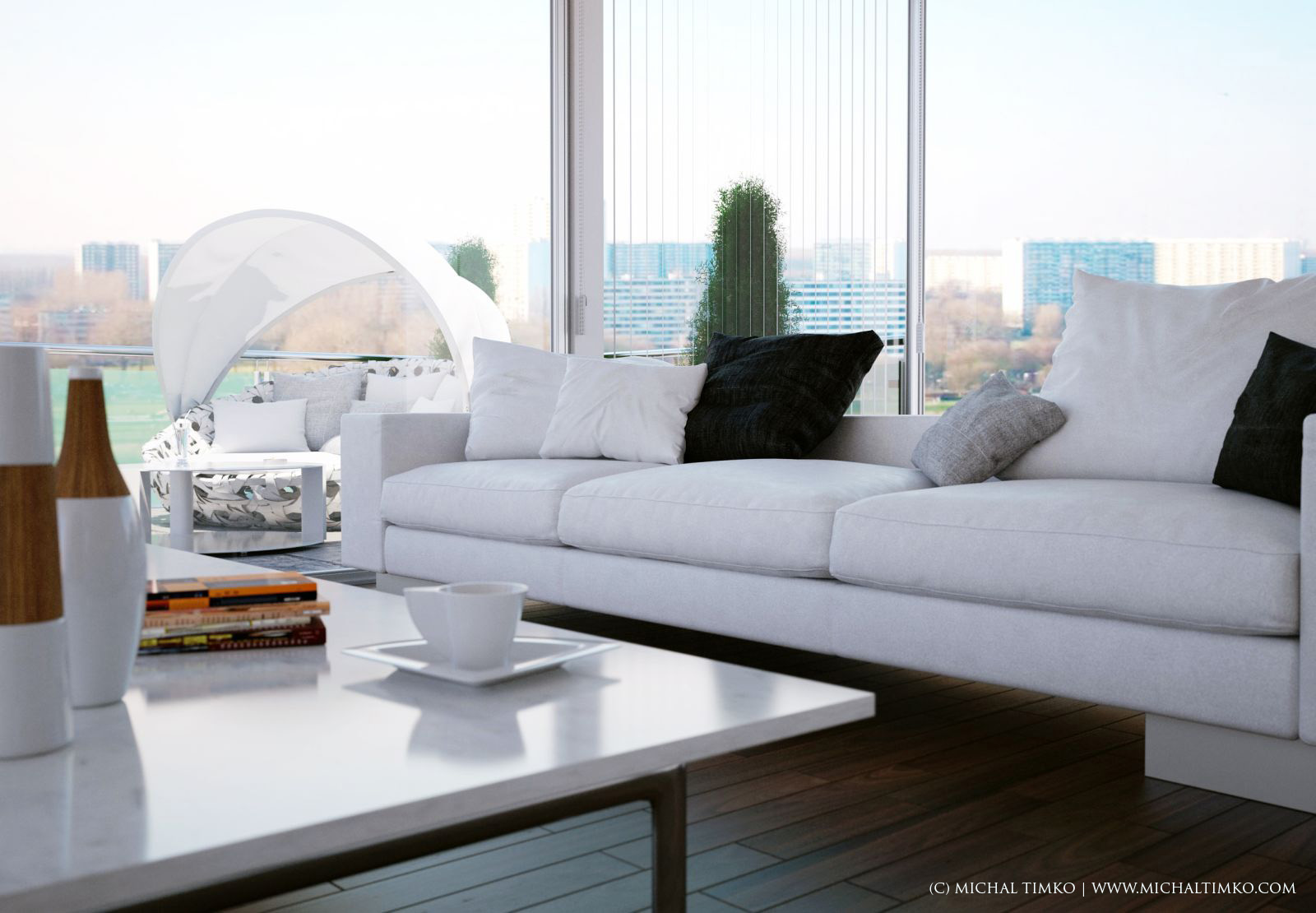 Did you model the stuff on the terrace ? the lovely spherical opened covered chairs ?