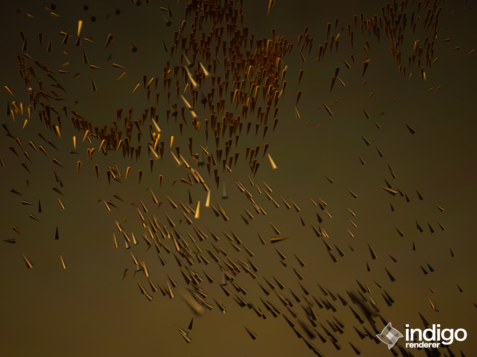 On the topic of particles, I want to add support for custom per particle attributes, rotation to start with. On a second thought it should be no big trouble to add an "arrow" motion blur based on the very velocity vector (linear motion blur) of dynamic particles.