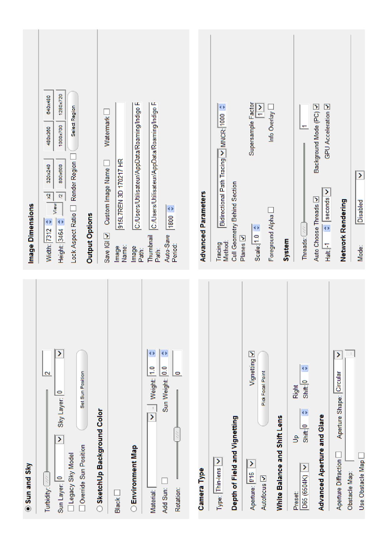 On travail sur le montage 3D sur Sketchup Pro 2016 , et Indigo RT v3.8.34 ( D’ailleurs je pense avoir acheté Indigo RT v4 ???)