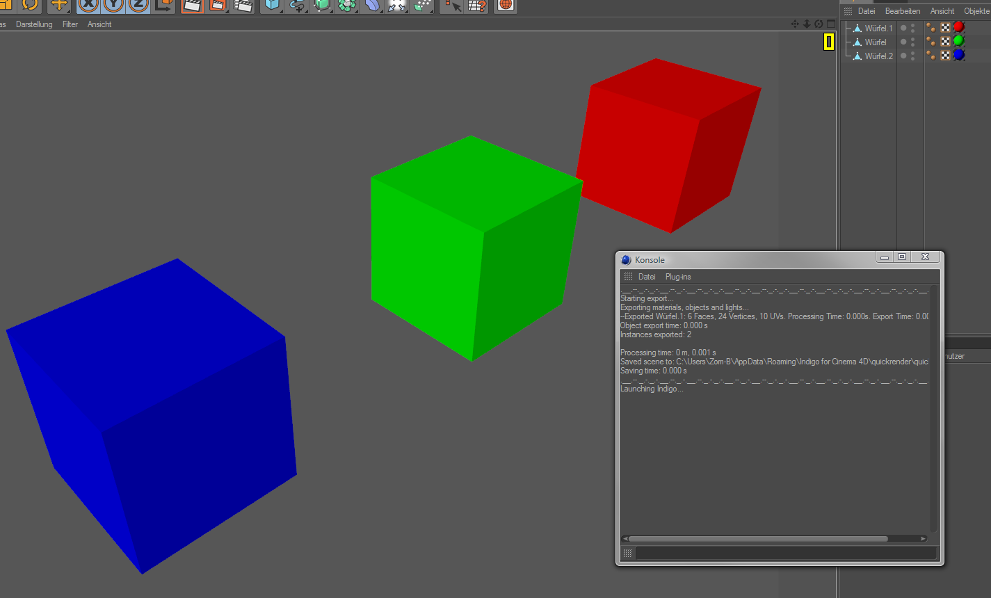 Also take care that Cindigo bakes all your C4D shaders to texture, so it can take some time if ya have a lot of high rez materials that use shaders (baking rez can be defined in the "Extra Options" of each material).