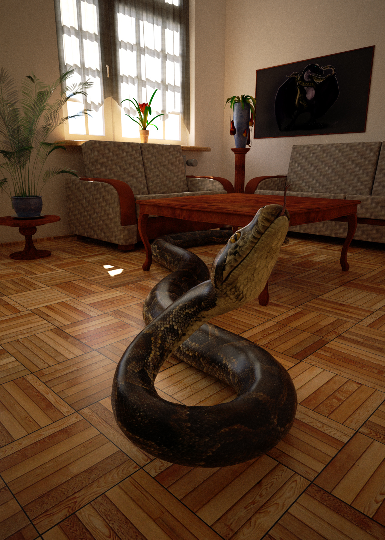 Um.. Nothing real fancy here, just an interior with a snake in it :3
