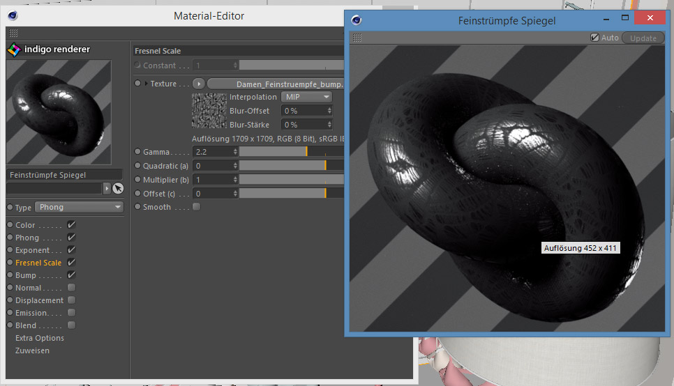 -Then in skindigo I set the material type to phong, ior 1,2 and exponent to 400 or so. Place the bump map in the bump channel at a 0.0004m value. finally set the albedo map to none with 20 black color and render to test. With pine the dark vains and knots are harder so shoud be the lighter parts in bump texture. I use to edit bump and exponent map in gimp/levels.