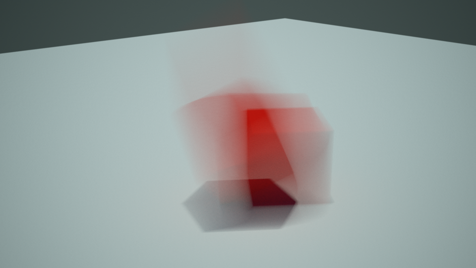 The first two renders (the sparks) are particles, the rest are rigid body physics. None were baked. Here's a camera motion blur test with keyframed animation (camera is attached to the cube, which is moving):