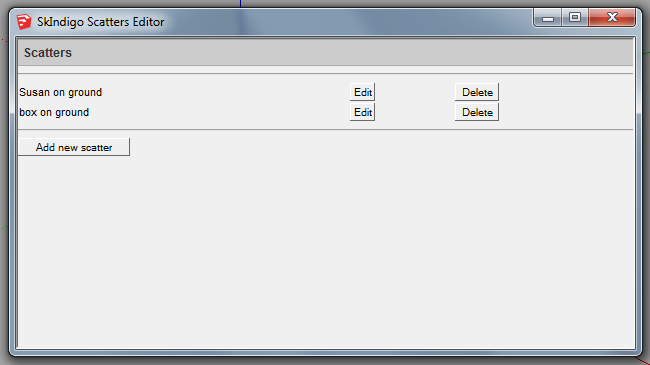 I'm working on a scattering tool for SkIndigo. The idea is be able to scatter objects over another object, for example clumps of grass over a ground plane, or scattering people to make a crowd.