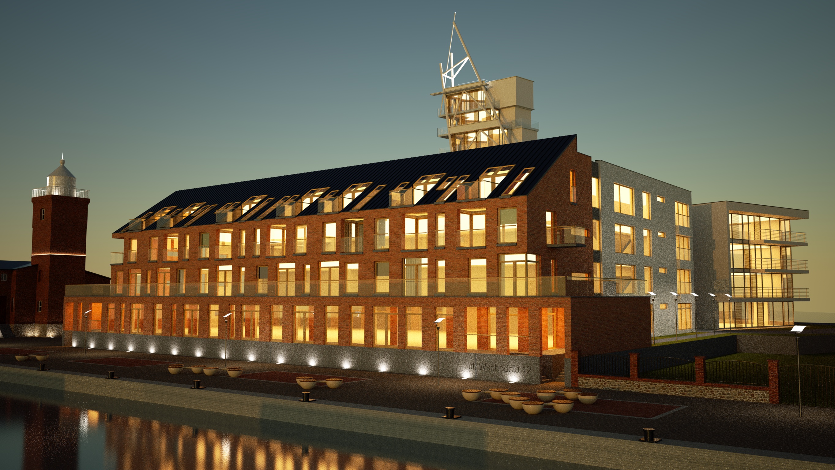 Here's my try of an evening scene with cold/warm light mix.