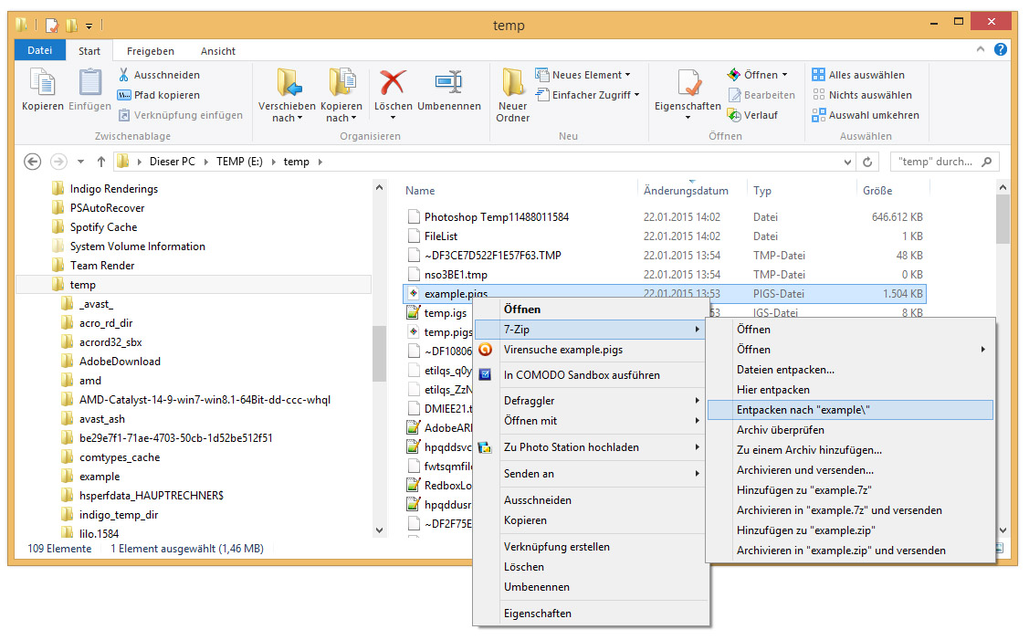 If you unpack the PIGS via a ZIP tool like explained, you enmd up with a folder with all stuff mentioned above inside, also refering into that folder without absolute paths inside the IGS