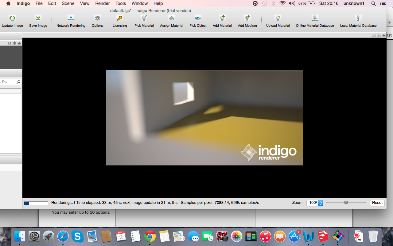 I am trying to render a simple sketch up scene on my mac book pro just for testing and after 30m the results are poor - I just get a blurry image. Please see the attached file. I have literally just drawn a model in sketch up, added a wooden texture and hit render and then left it. How come the render doesn't really show the wood texture and is blurry?