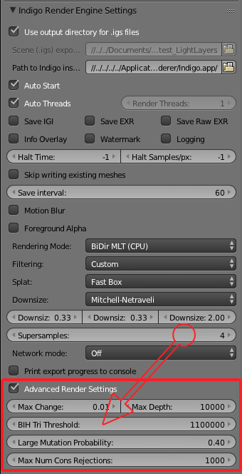 This was not adjustable through the Blendigo interface, so I've added it. As it's a parameter only used for Metropolis Light Transport it only shows up when MLT is activated in Blendigo.