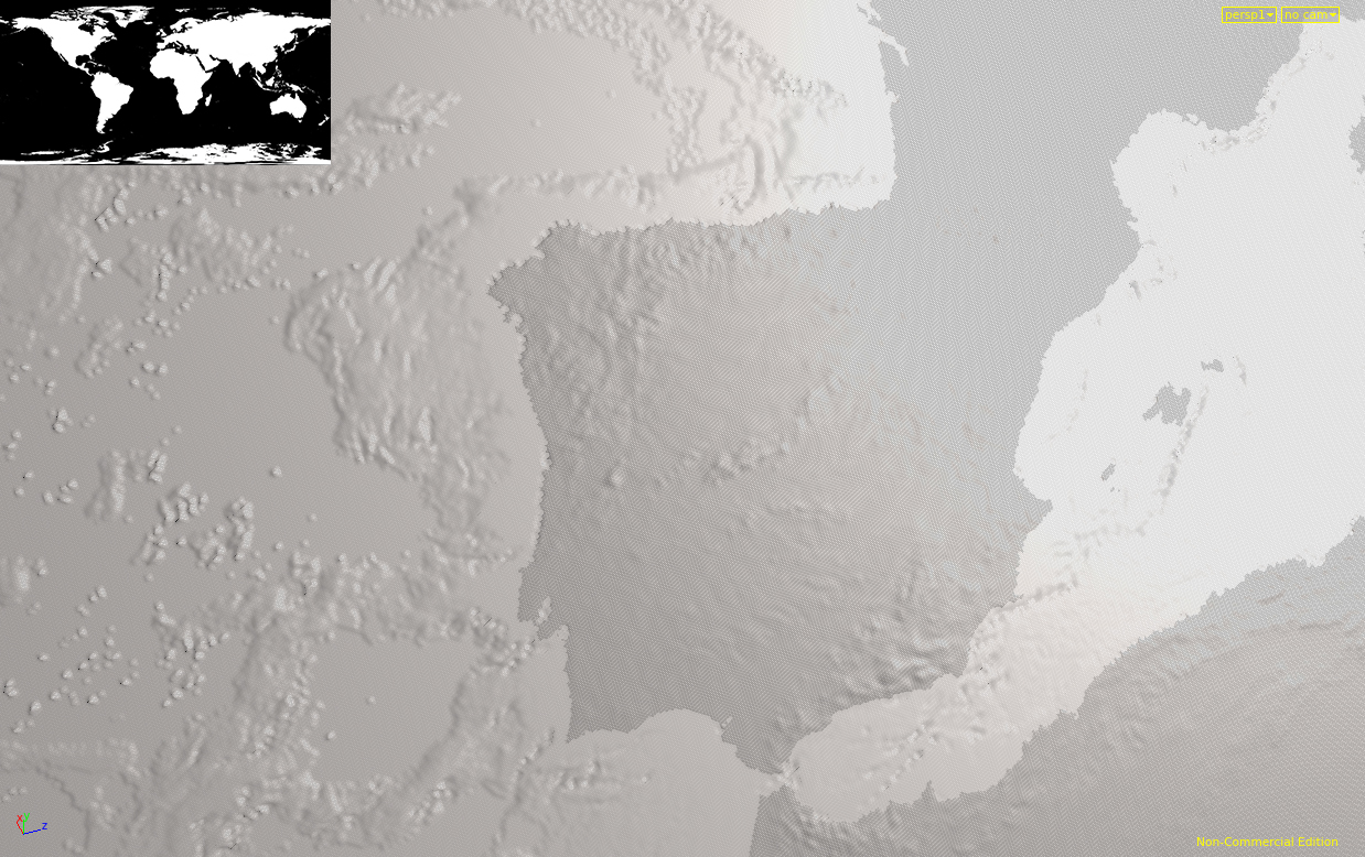 Earth simulation again. More polygons and more accurate displacements. The maps necessary to this scene are over the net and have 21K resolution (it is necessary to work they a bit). Three displacements in houdini: