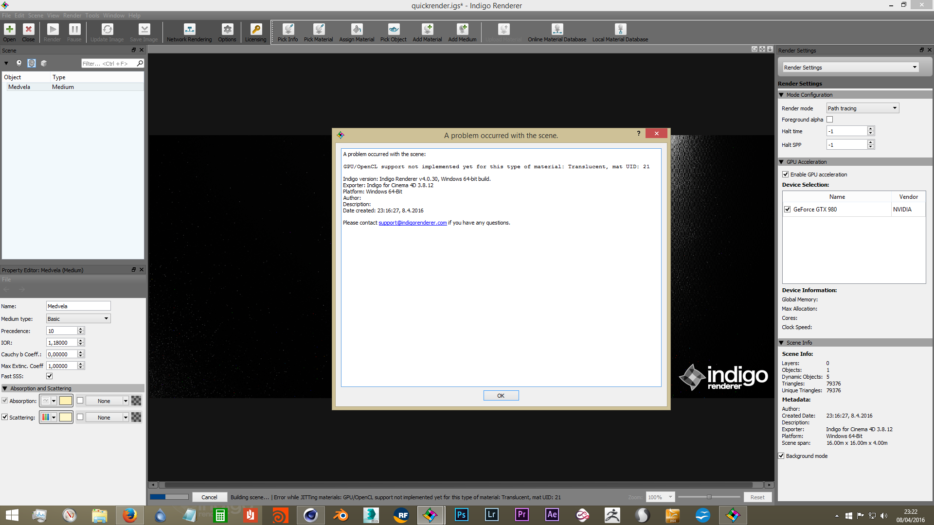 Edit: This is the message of error when I try to render a fast SSS with GPU ( and seems that for others users this works). Nobody has this problem seems. Once GPU starts I can´t change a value, there has no response.