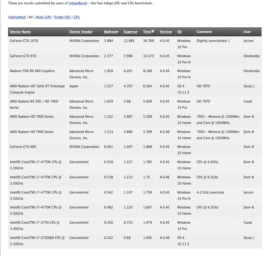 IndigoBench is a standalone benchmark application based on Indigo 4's advanced rendering engine, useful for measuring the performance of modern CPUs and GPUs. Using industry-standard OpenCL, a wide variety of GPUs from NVIDIA, AMD and Intel are supported.