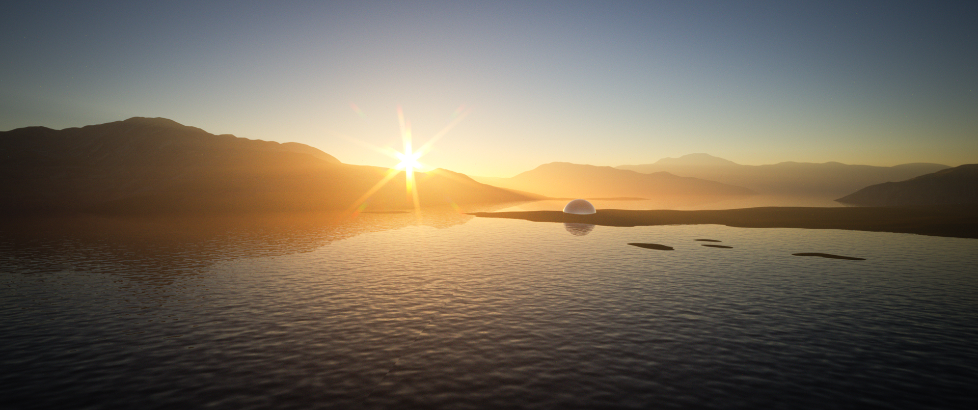 The silver sphere has 1 km radius, so the islands are giant (I put this reference later). A little disaster but here goes.