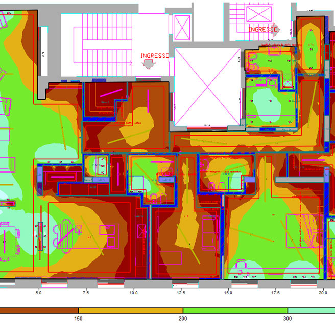 Getting a colorized image representing illumination level is only part of the requirement of a photometric report / analysis. A scale against which this is measured (accurately relevant to certain lux levels, with some kind of lux colour chart; min / max / average luminance) and a report of sorts. Hopefully some kind of picker to pinpoint / query illumination at specific position (as per picker).