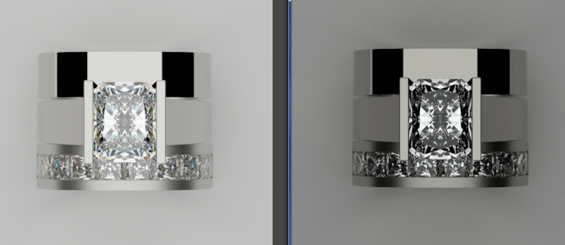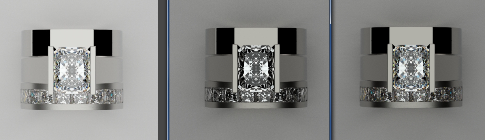 See these results with different light setups. On the left are internal renderings, on the right rendered with Indigo. Picture 01 was lighted with HDRI, the next two with area lights.