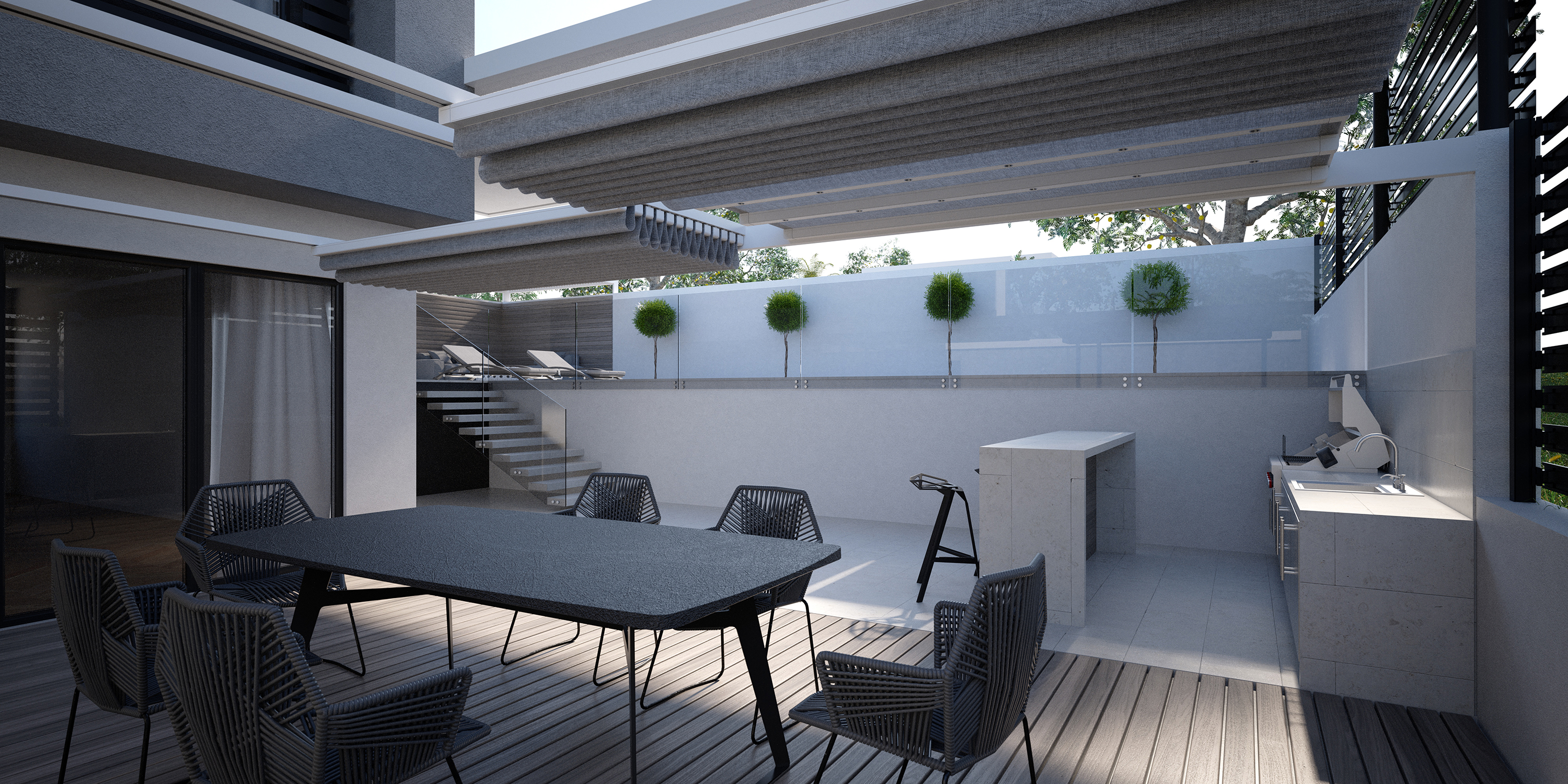 Here are the exterior renders of house in Sidney. This is one of my latest projects and it is reconstruction of existing house. Client asked for facade and pool area modernization. I was asked to give concept of modern and cubic design withing gray and white color scheme. Hope you like what you see!
