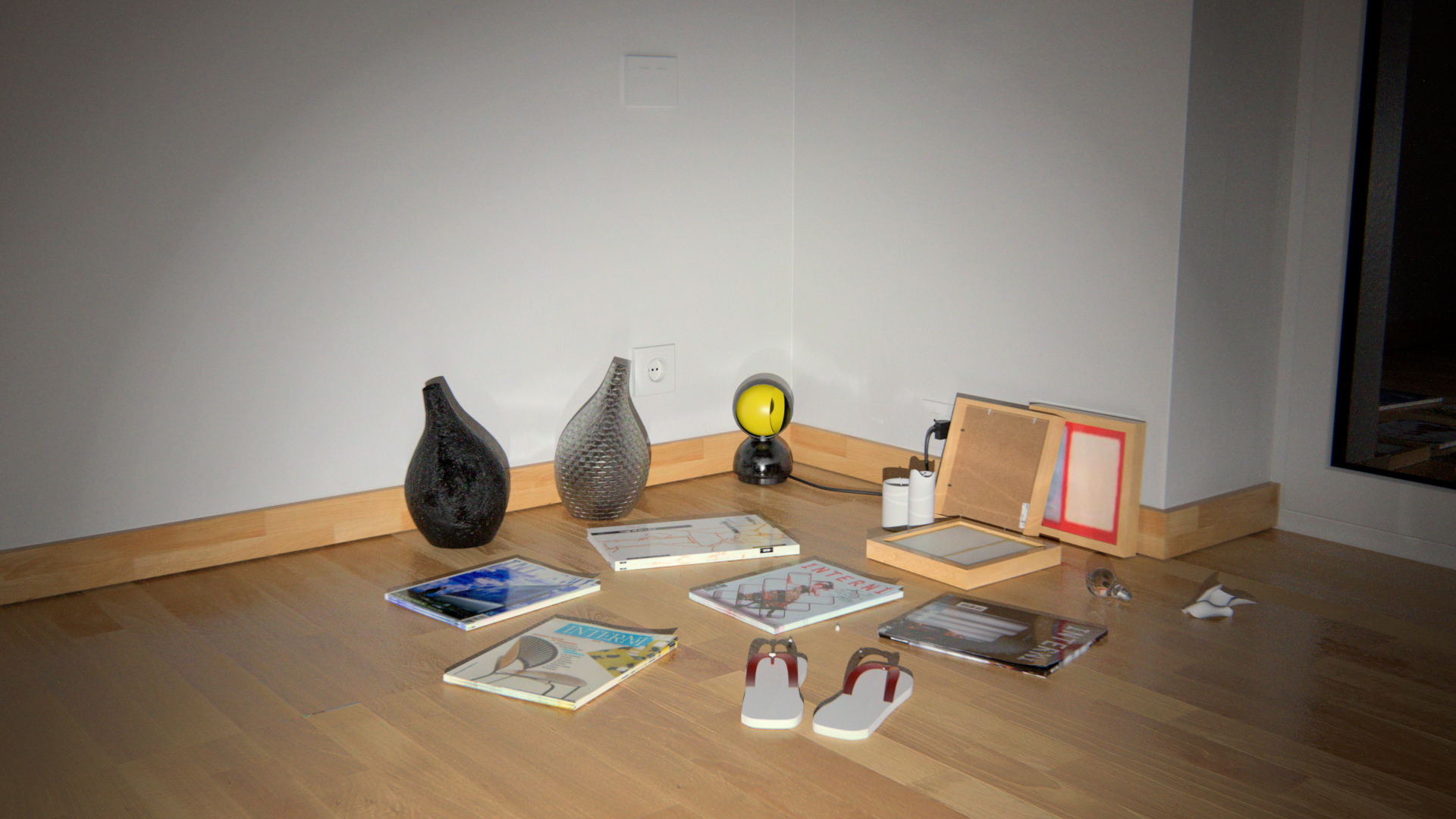 however, to me it seems as though the floor is a little too rough, I would scale the texture down by at least 50% and / or change the displacement values so it is less pronounced