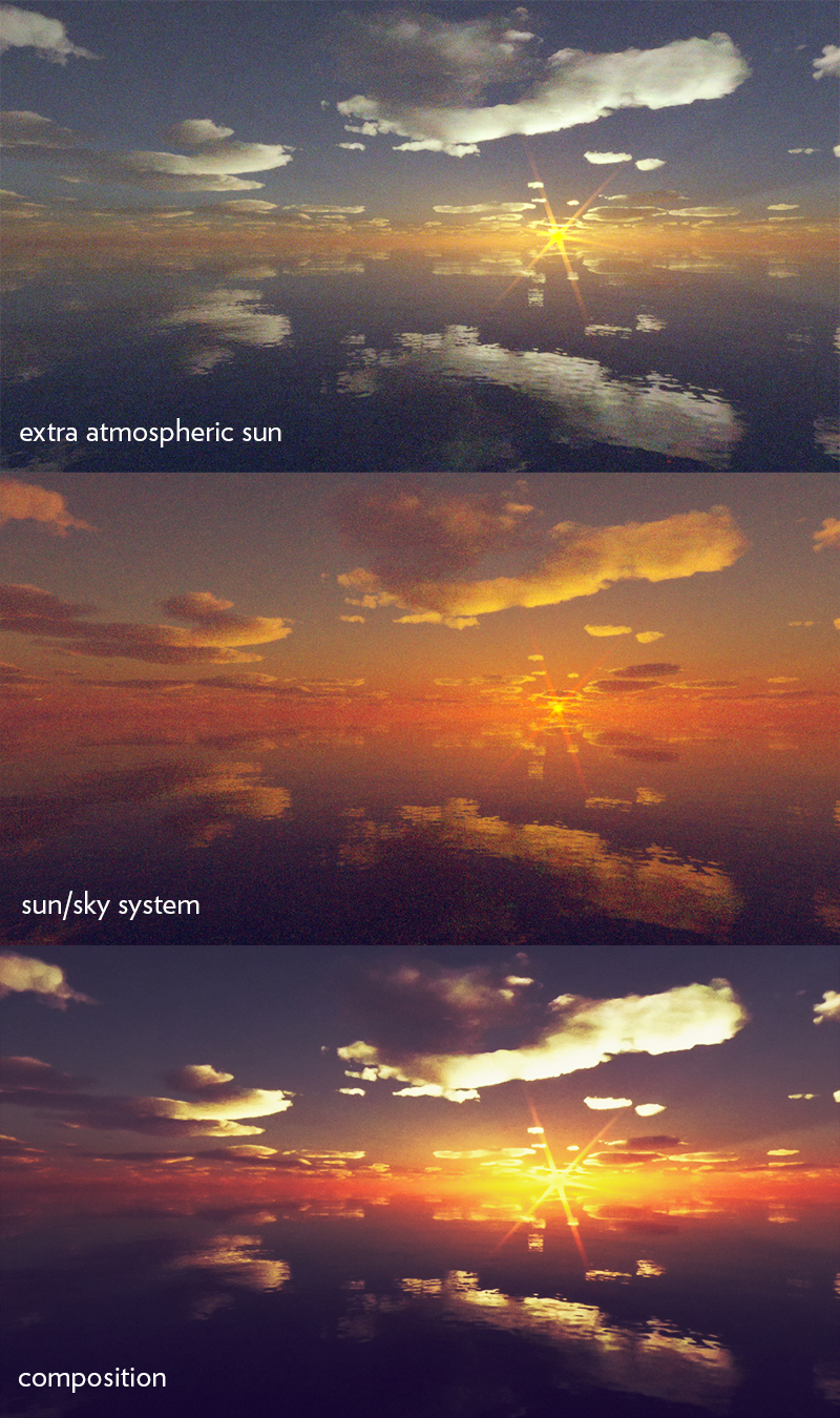 When I work only with atmosphere, it just goes right. A little hard point of convergence since the inclusion of ozone in the material in the 3.8 serie of Indigo, but much more realistic.
