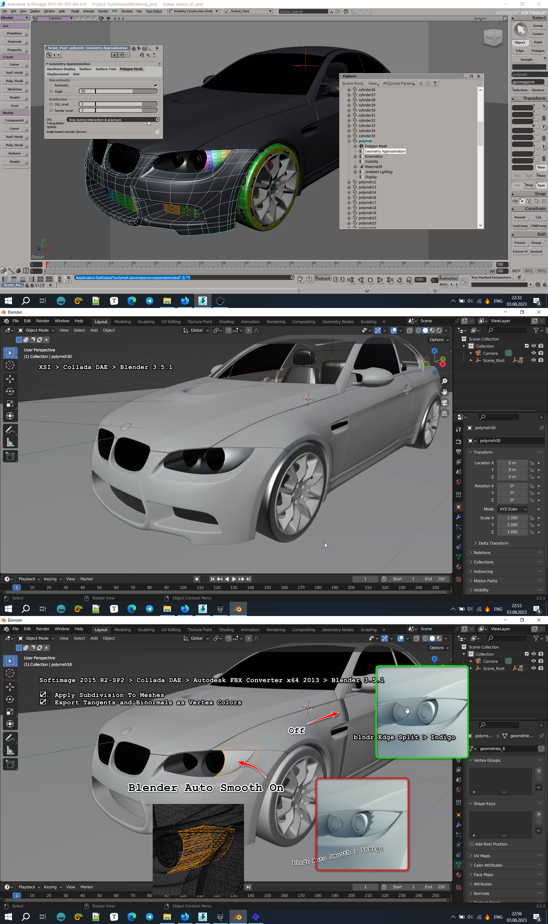 Softimage 2015 R2-SP2 > Collada DAE > Autodesk FBX Converter x64 2013 > Blender 3.5.1