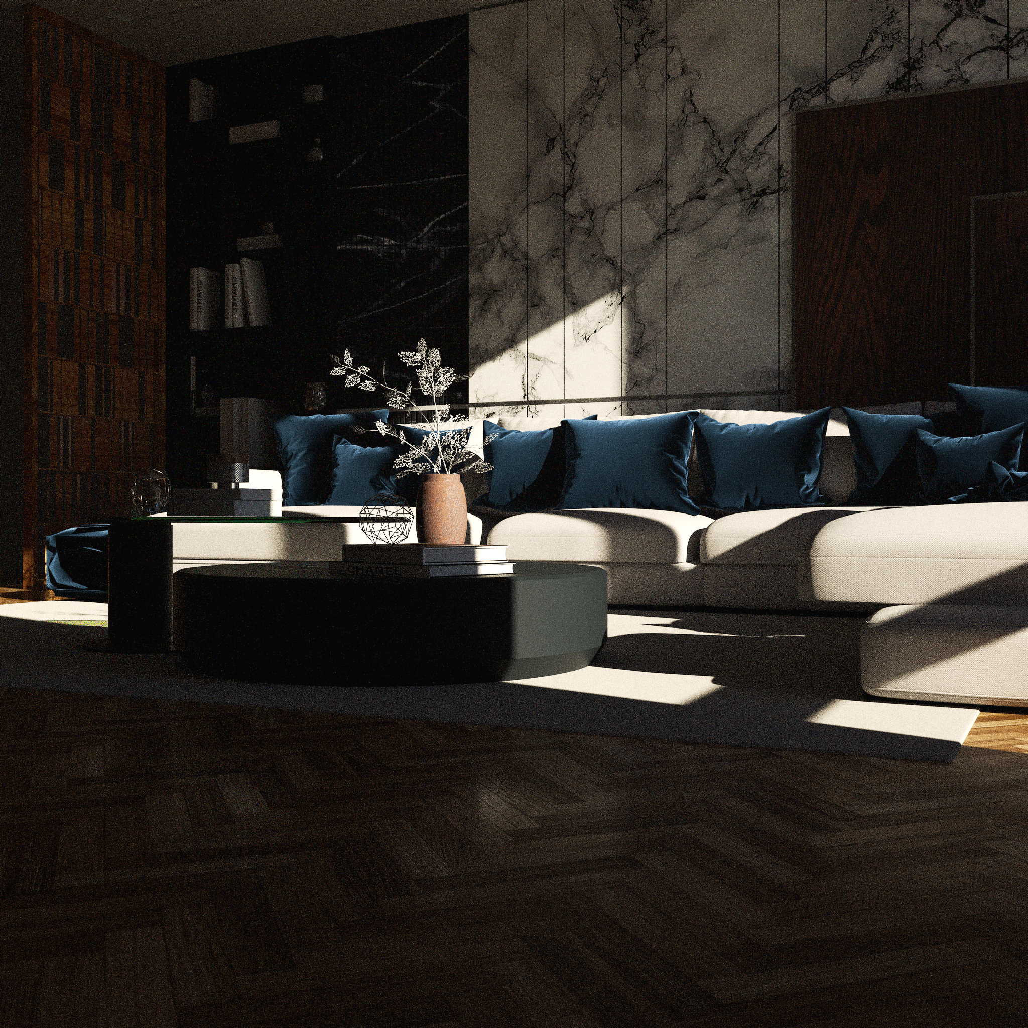 First attempt over this interior. Simple. Texture are free from internet, not the best at this moment. First attempt... A day of work with render time included. High contrast for the tones of the furniture that gives a dark image in general. Sun & Sky as lonely light source.