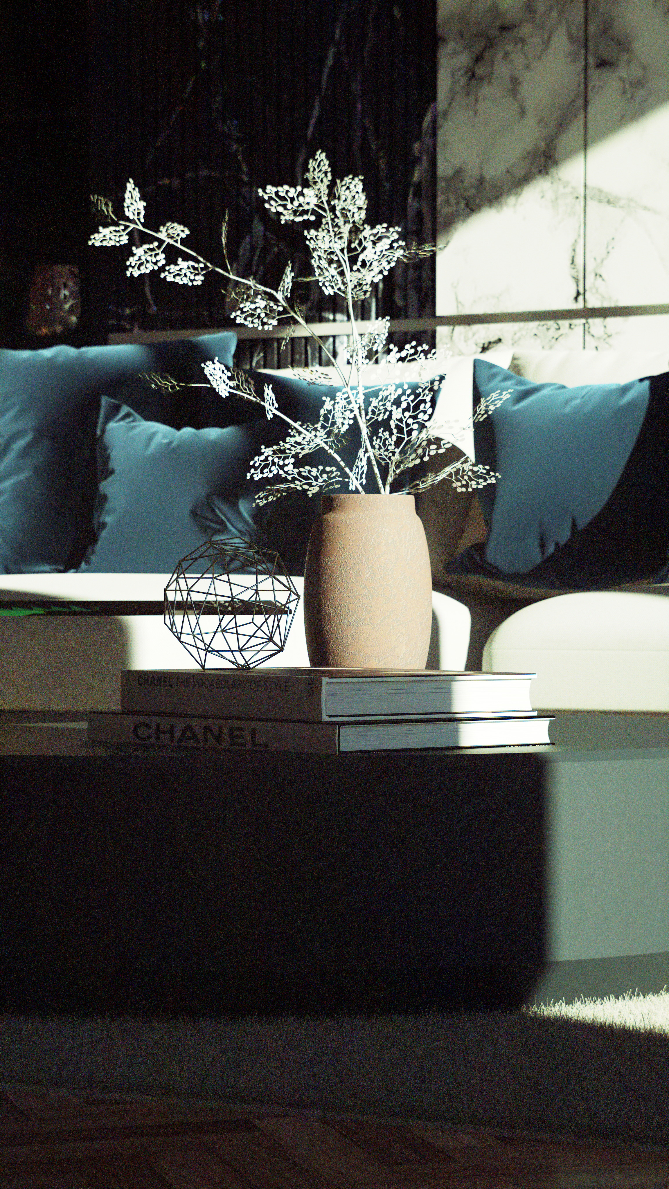 First attempt over this interior. Simple. Texture are free from internet, not the best at this moment. First attempt... A day of work with render time included. High contrast for the tones of the furniture that gives a dark image in general. Sun & Sky as lonely light source.