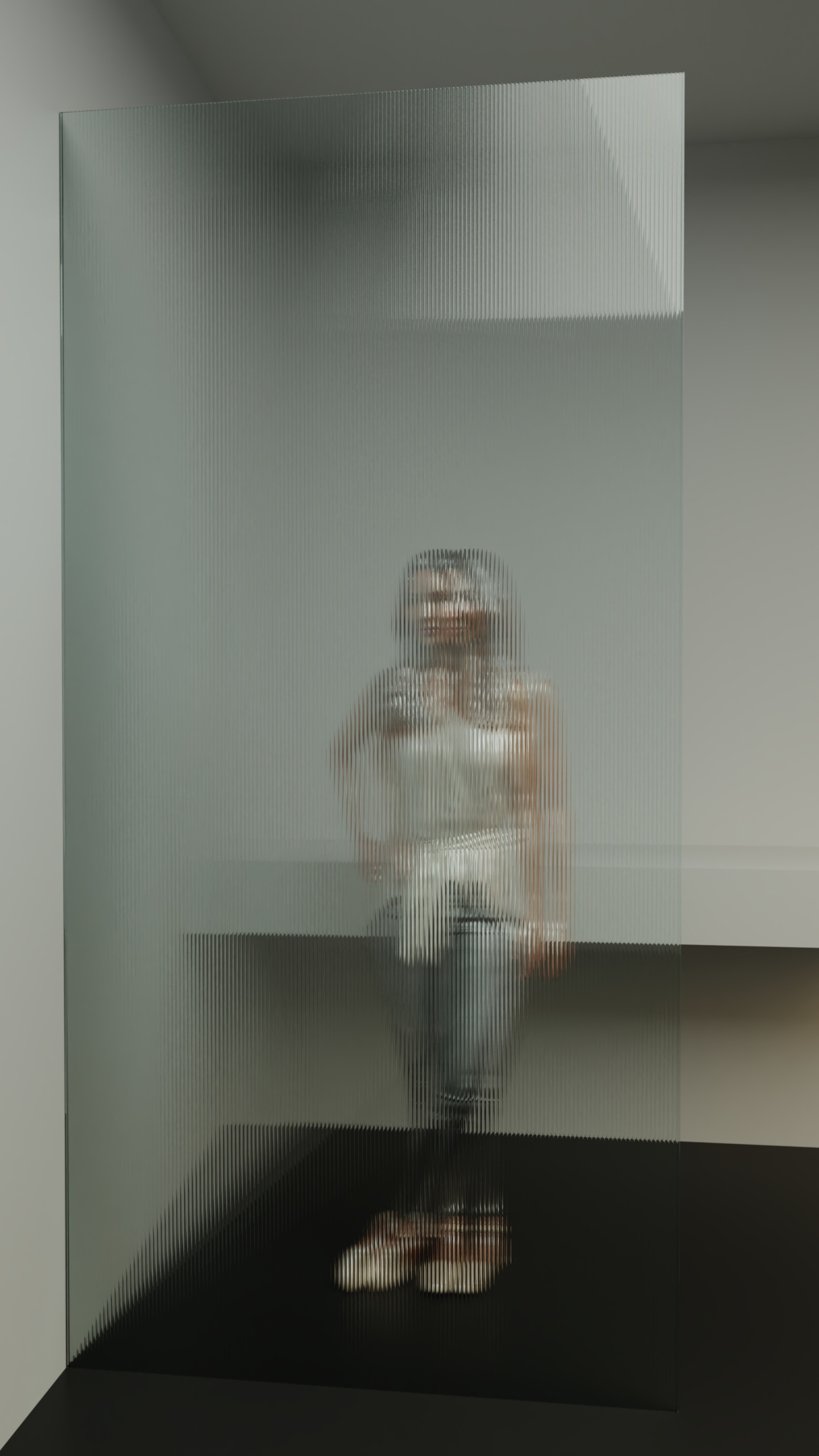 Model the 'panel' and apply some from "Glass material library" for a starter