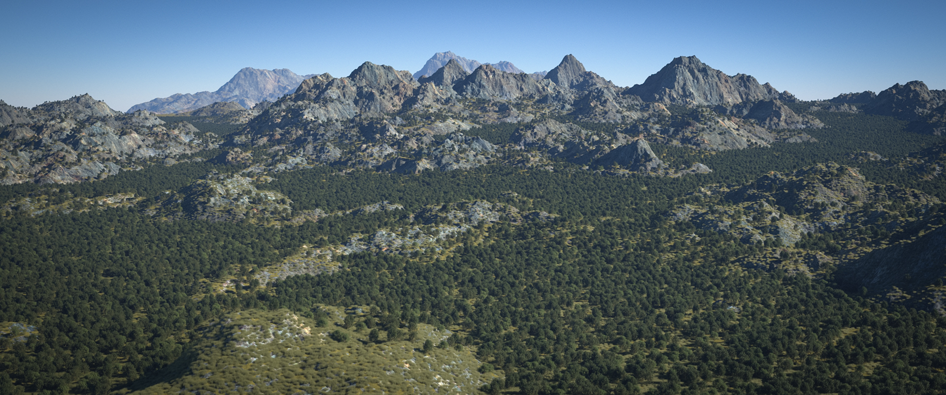 Contegufo, I use houdini for the landscapes because is at the moment the one that allows me to extend the space. I try large landscapes since the beginning and the multifractal asset that I found in a course of CMIVFX is very powerfull for this purposes. For the vegetation I´m using Surface Spread, yes.
