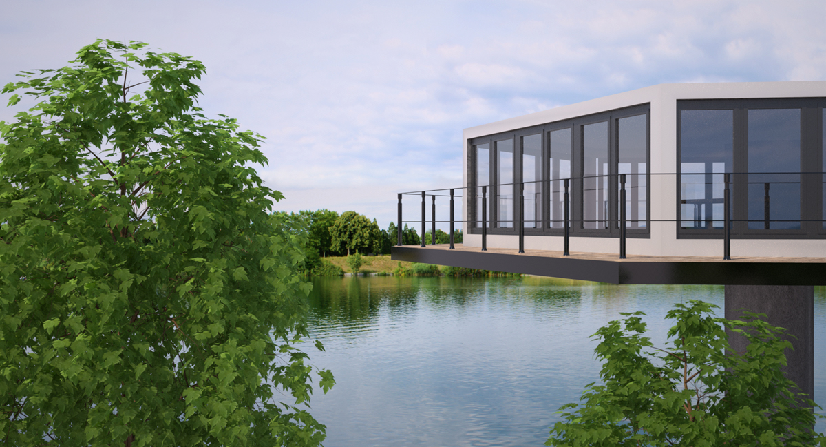 - It feels that the house floor is not horizontal. I think that the background horizon is not aligned with the scenes's horizon. Try to model a horizon (flat object at the same height than the house, placed far away) and align the background with it.