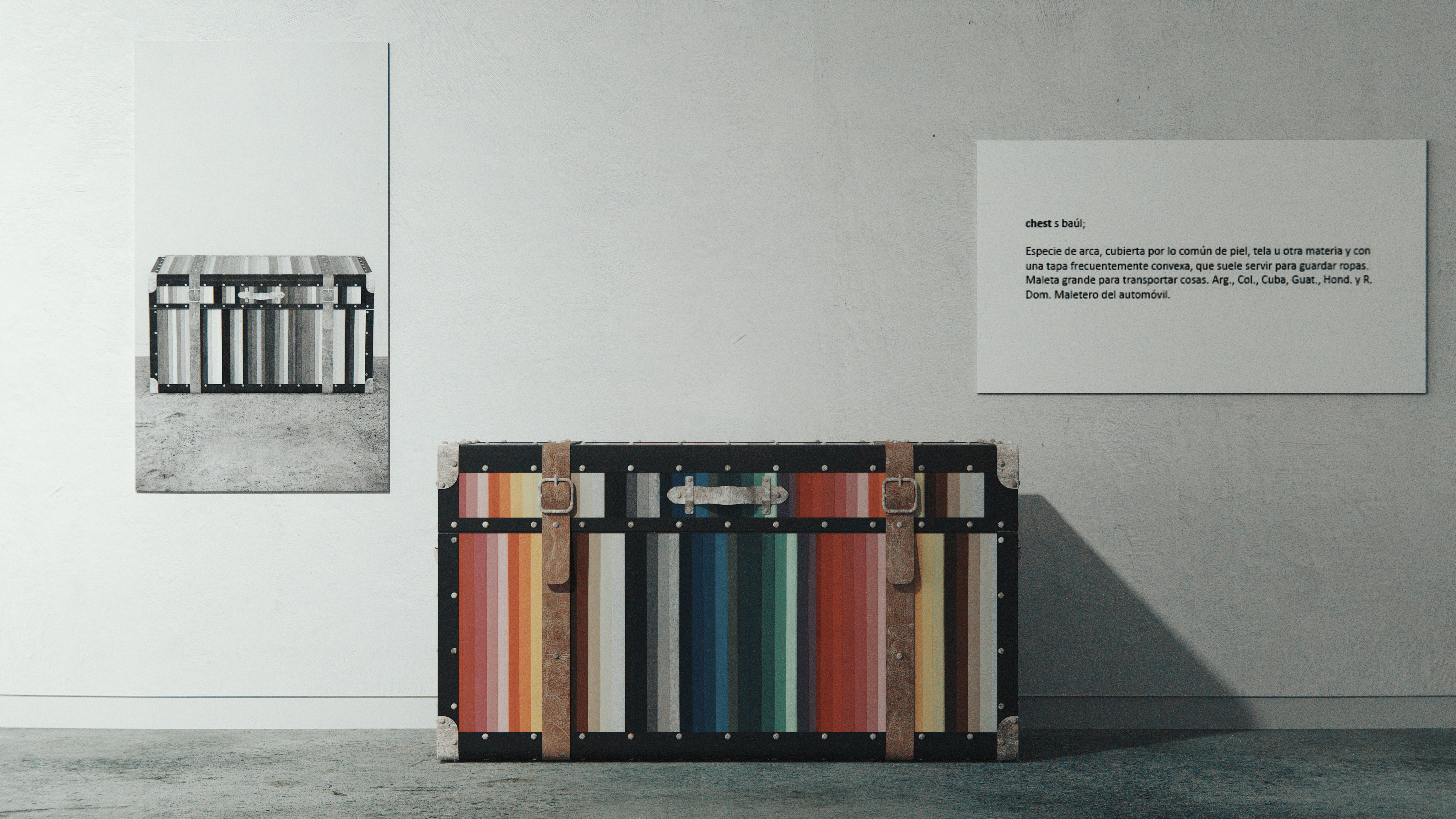 I feel the post production of the image good. But I`m not very agree with the metal parts of the chest. Specially with the buckles. A little bit of precipitation with this one...