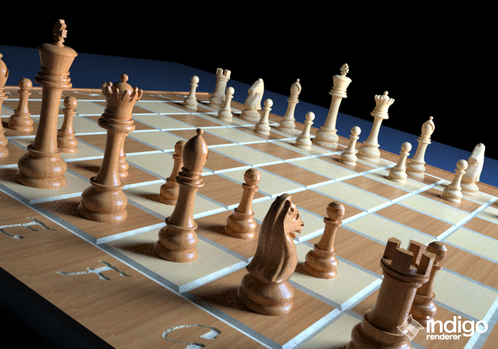 First render in Indigo of a chess set modelled in Sketchup. Uses materials taken straight from the Materials Library